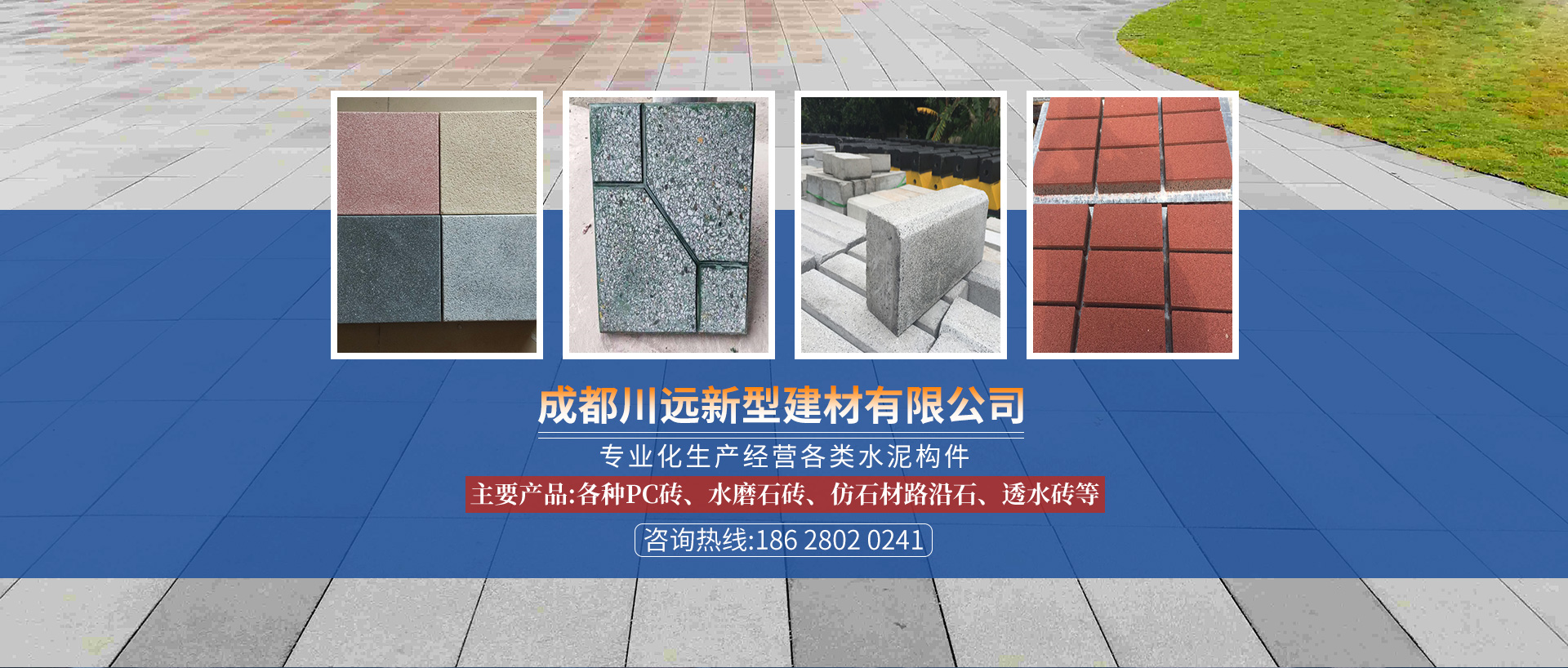 成都川遠(yuǎn)新型建材有限公司是一家專業(yè)化生產(chǎn)經(jīng)營透水磚、pc磚定制,仿石材路沿石、水磨石磚的企業(yè)。擁有了面積達(dá)1000多平方的生產(chǎn)基地,多套完整的大、中型生產(chǎn)設(shè)備和眾多專業(yè)生產(chǎn)技術(shù)人員。本廠生產(chǎn)的各種型號等...